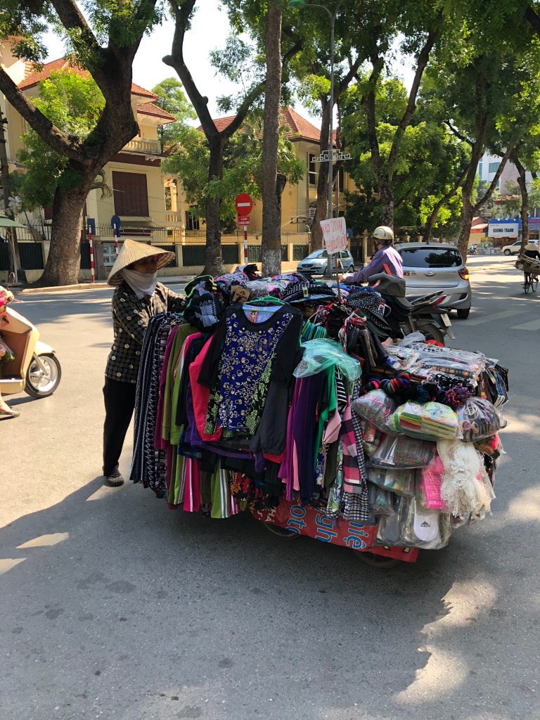 Back to our hotel to find a razor and a different purse.  Apparently pickpockets are very common, so our backpacks are discouraged.  I found a travel purse in a multi-story mall for 413,000 dong ($18).  It’s wild looking at prices when there are 23,000 dong per dollar.  A Gillette razor was found at a Circle K, and all was good.  Tom tried the traditional Vietnamese Pho (thin noodle soup) for lunch, and we got our leisurely afternoon nap.