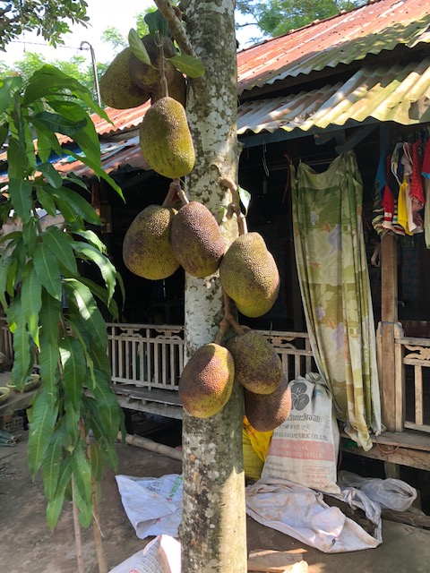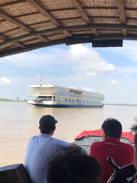 This was our last trip with Hai, because we entered Cambodia waters and he headed back to Saigon, as we headed to Phnom Penh. At 11, we had another lecture by Joyce on “Hot Pots, Museum Raids, and the Race to Uncover Asia’s Archaeological Past”. I added some photos of our typical lunch buffet because I’d forgotten to previously. In the afternoon, there was a tropical fruits demonstration of carving and tasting, and a showing of “The Killing Fields”.