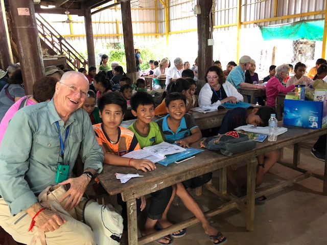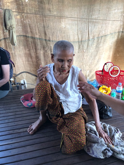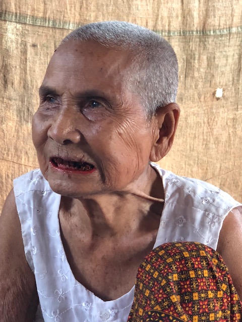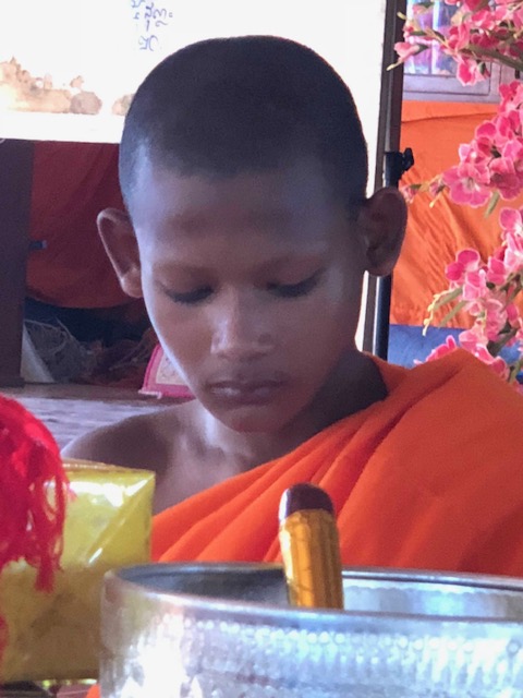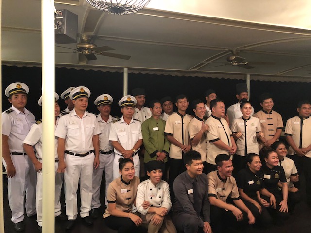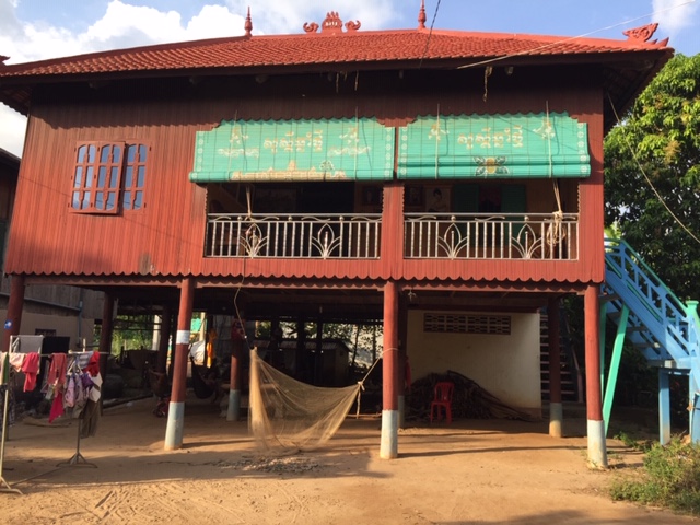 In the afternoon, we walked through two small villages in Angkor Ban to see how the locals lived. A monk gave us a blessing. We visited a school, where the kids were taking an English class and they practiced reading for us. The travel agency brought along a huge box of supplies and books for the children (ages about 8-12). The area floods during monsoon season, so all the homes are built on stilts. The area is primarily Buddhist and home has a small shrine outside it. We stopped at one 80+-year-old woman’s home. She liked to chew Betel nut, and didn’t mind showing us inside her home (for a gift that the guide brought along). The homes are pretty bare. That night, the crew gave us a farewell dance (modern) and got many of the passengers dancing. This was the last night on the ship. It’s been a really great river cruise, with a superb staff.