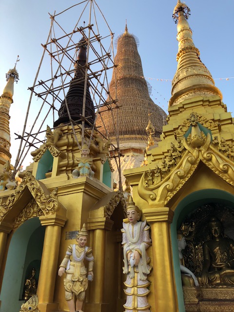 The rest of the photos are all from the Shwedagon Pagoda complex. Notice the bamboo construction covering the center stupa.