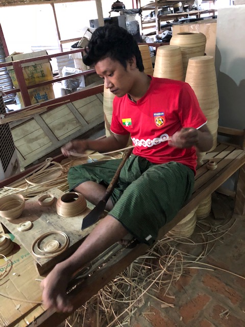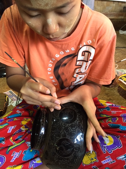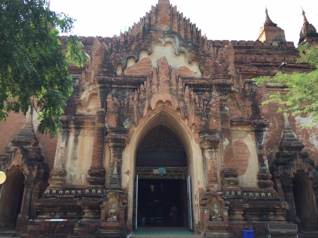 The first photo of the control tower is to remind of us the local airlines that we used within Myanmar. From Yangon (up at 7, of course) to Bagan, we used Air Kanbawza, whose control tower was no higher than the pilot. 😉 All flights were economy naturally. Our guides in Bagan were twin brothers, whose names both sounded like Nyaung. We started at Shwezigon Pagoda, a gold-gilded stupa at the north of Bagan, then saw the Htiilominio temple with several Buddha images, and checked into our hotel (resort) at Tharabar Gate. In the afternoon, we visited the Gubyaukgyi Temple, with its excellent (still colored) mural paintings from the 13th century (no photos allowed, unfortunately), and then went to a lacquer-ware workshop in Myinkabar Village. At the end of the day, we went on a horse cart ride for over an hour, which was a lot more fun for whoever sat in front. The person in back never gets to see the (many) potholes coming up. But we passed dozens and dozens of old brick stupas and pagodas. The locals are excited because this is one of the ways that tourists are helping the economy.