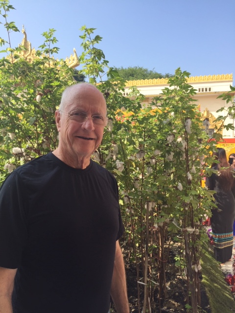 Most of the Buddhas we saw in Mandalay were covered with robes because a full moon celebration for the monks. There was a competition for selected weavers to weave robes for the statues in 24 hours. So we missed out on a lot of the normal gold statues that we might have seen. One of the photos below shows Tom standing next to some cotton bushes they had brought in for the celebration.