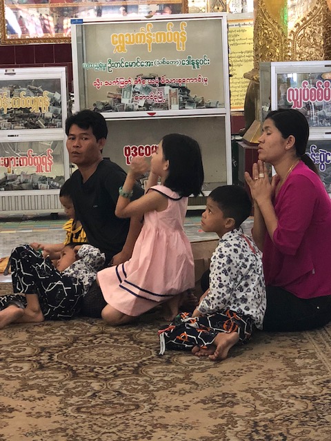 I forgot to mention that one of the strange things we noticed only in Myanmar. Many of the Buddha images are surrounded by flashing neon lights. Seems to be a bit of a contradiction. What isn’t a contradiction is how devoted the majority of people are.